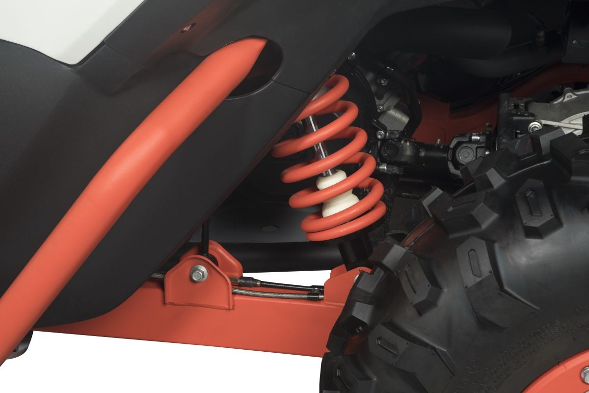 Nezávislé zavěšení kol, velké nájezdové úhly a nadprůměrná světlá výška s vysokými zdvihy pérování zajišťuje vynikající ovladatelnost a skvělou průchodnost v těžkém terénu.